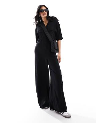 Jumpsuits & Playsuits by ASOS DESIGN Go all-in-one Spread collar Button placket Chest pockets Wide leg Relaxed fit
