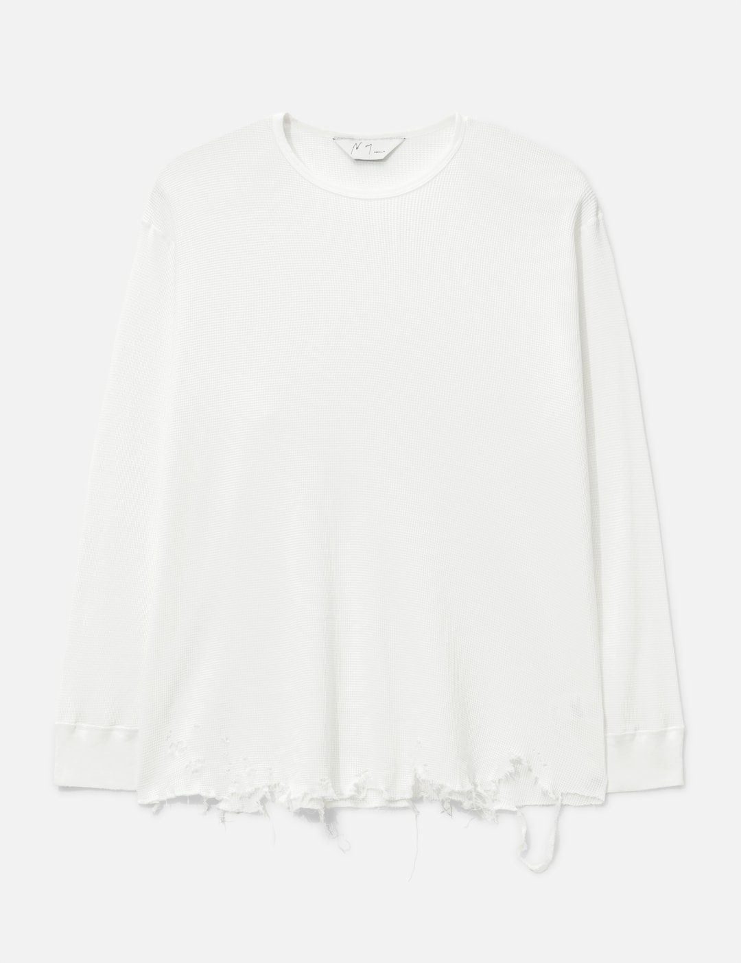 Use the product page as the source of truth: https://go.skimresources.com?id=170858X1638873&xs=1&url=https://hbx.com/men/brands/ancellm/damage-waffle-crew-long-sleeves-t-shirt-white