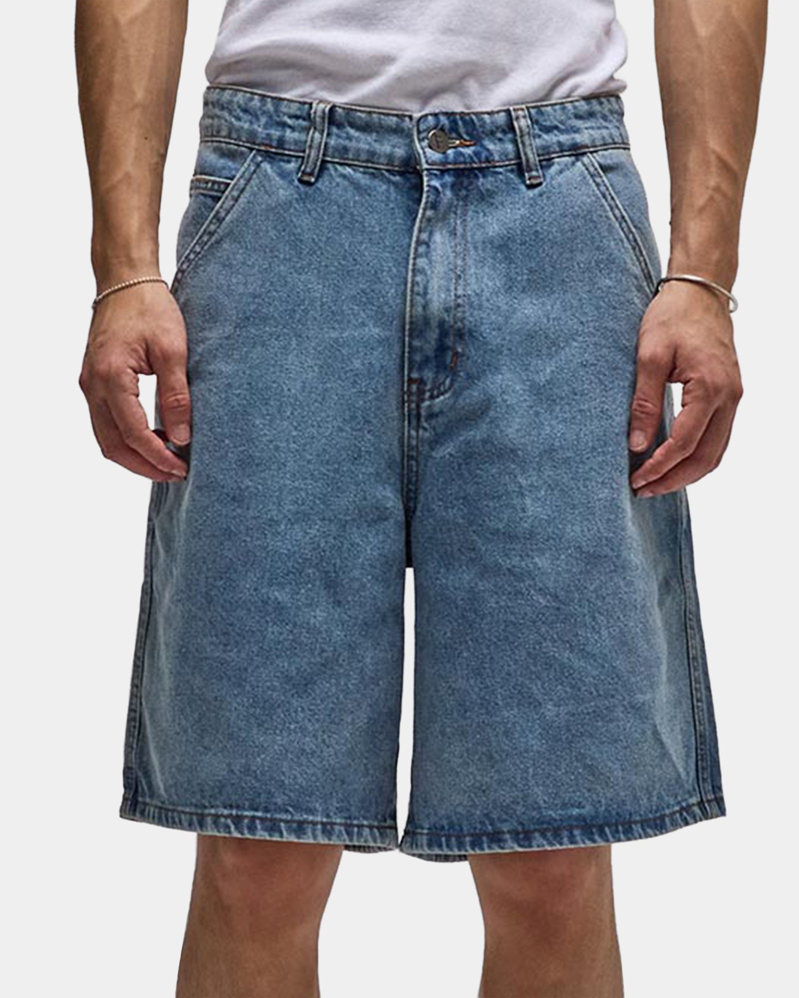 The product shot understands exactly what this piece needs: clarity, restraint, and enough attitude to let the cut do the work. Set against a neutral backdrop, a pair of shorts is given full visual priority, so your eye goes straight to the line, proportion, and surface texture. It comes across as considered rather than complicated, which is often the difference between something trendy and something genuinely useful. The washed denim tone adds depth and a little lived-in ease, making the piece feel less precious and more wearable. Denim always benefits from a clear, front-on view because the wash and structure tell half the story.