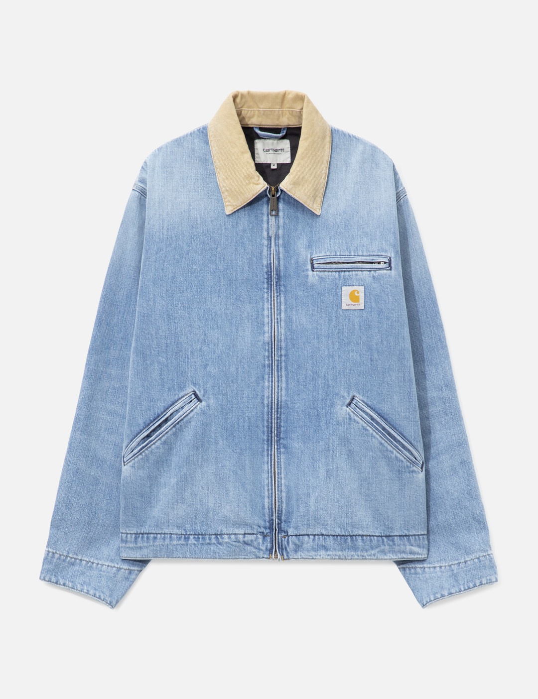 The OG Detroit Jacket channels Carhartt Work In Progress’s rugged utility with a loose fit, heavyweight cotton denim build, and a corduroy collar. Finished with light padding, a two-way zipper closure, and signature Square Label branding.
