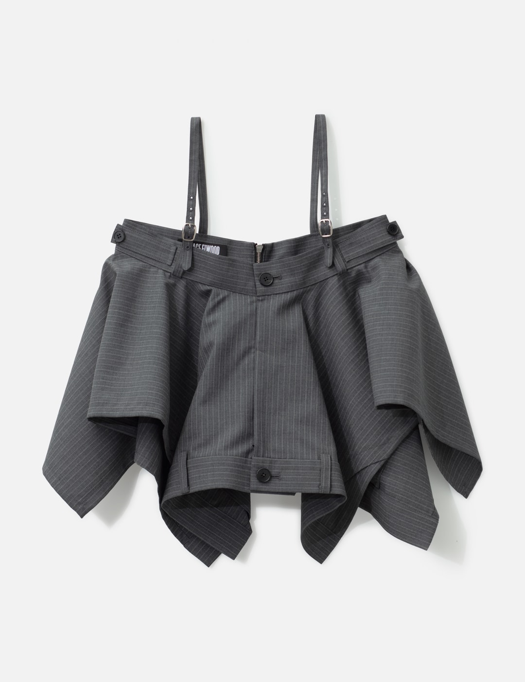 The Pants Detail Flare Top reworks tailoring with pants’ waistband details and a versatile 2-way design that can also be worn as a flare skirt. Cut from a wool-polyester blend, it features adjustable shoulder straps and a YKK EXCELLA® back zipper closure.