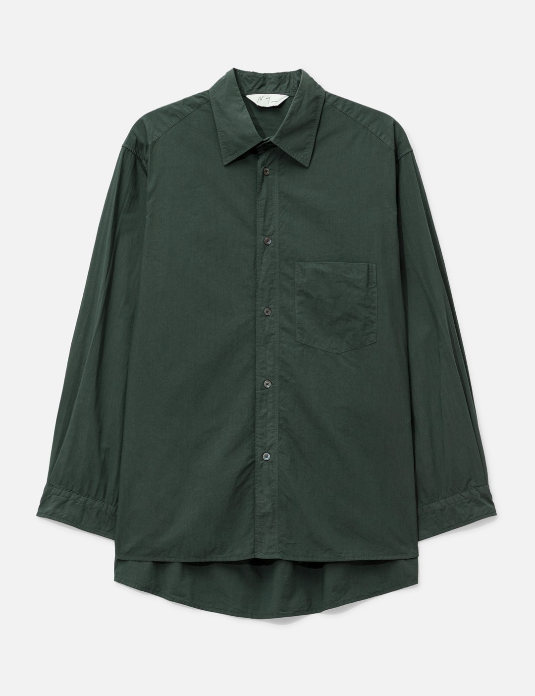 Use the product page as the source of truth: https://go.skimresources.com?id=170858X1638873&xs=1&url=https://hbx.com/men/brands/ancellm/shrink-over-shirt-green-charcoal