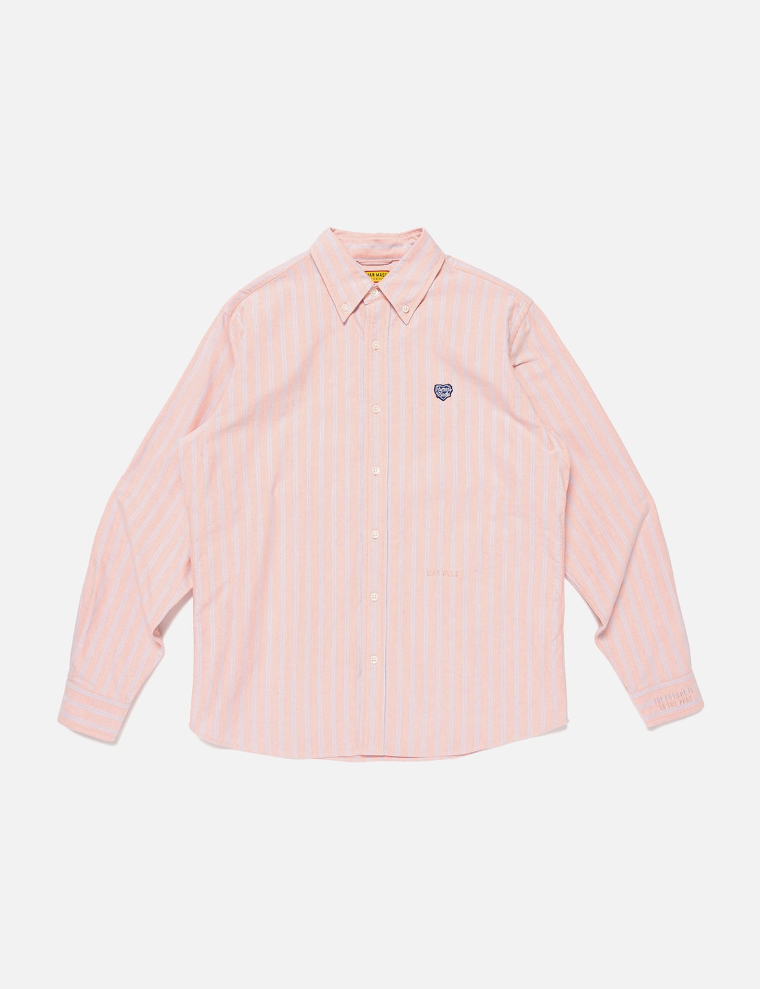 Use the product page as the source of truth: https://go.skimresources.com?id=170858X1638873&xs=1&url=https://hbx.com/women/brands/human-made/striped-oxford-button-down-shirt-red